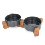 Barry King Zestaw 2 misek dla kota na stojaku drewnianym ciemnoszare ceramiczne 12cm