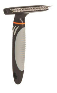- Grzebień lub rak do podszerstka (deshedding tool) – wariant wyposażony w szerokie, stalowe zęby lub specjalne zgrzebła. Umożliwia delikatne wyciąganie luźnego podszerstka bez naruszania okrywy włosowej. Niezastąpiony w okresie linienia, czyli głównie jesienią lub wiosną. Dzięki niemu można pozbyć się skutecznie problemu osadzania się sierści na ubraniach;