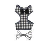 Barry King Zestaw szelki + smycz szary w kratkę poliester/bawełna dł. smyczy 1,2m rozmiar S