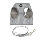 Barry King Zestaw szelki + smycz szary poliester rozmiar S odblaskowe