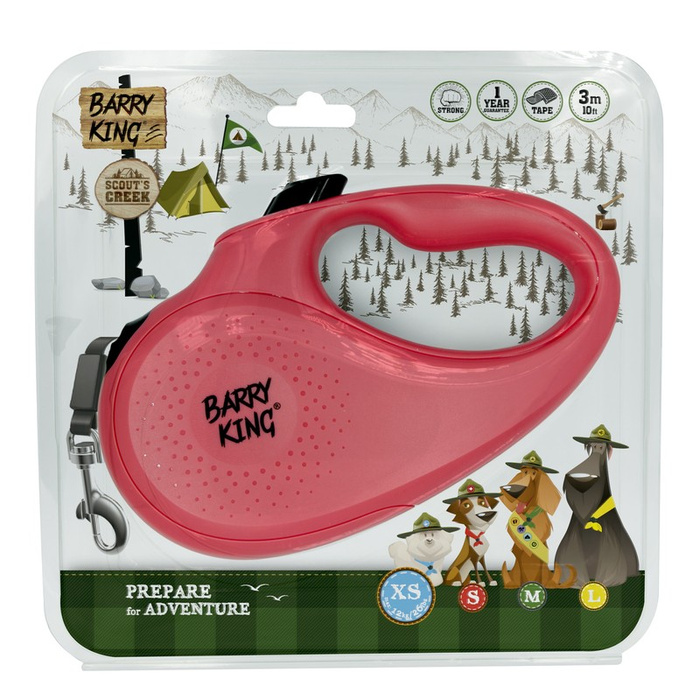 Barry King smycz automatyczna dla psa XS taśma 3m różowa