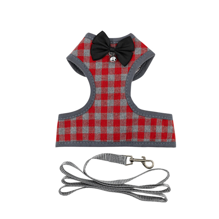 - Kolor: Czerwony w kratkę, szary (smycz)